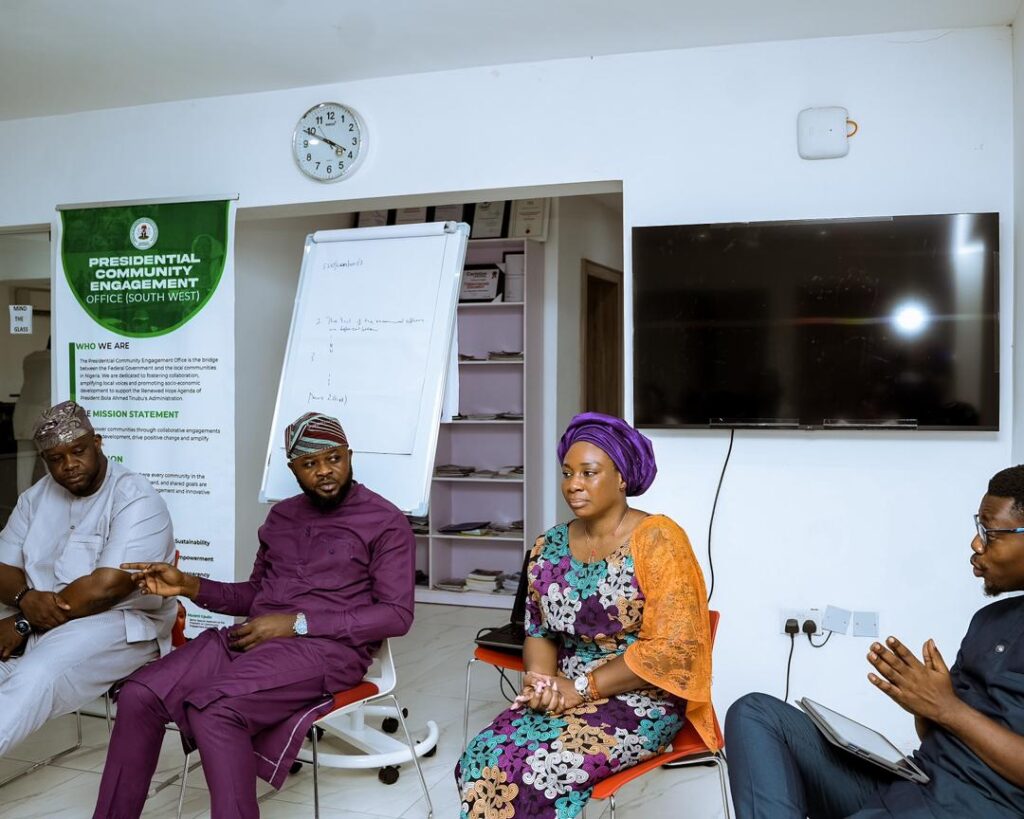 The Presidential Community Engagement Office (South-West) remains committed to deepening engagement with communities across the region and ensuring that government policies and programmes are effectively communicated and delivered in ways that positively impact the lives of the people.